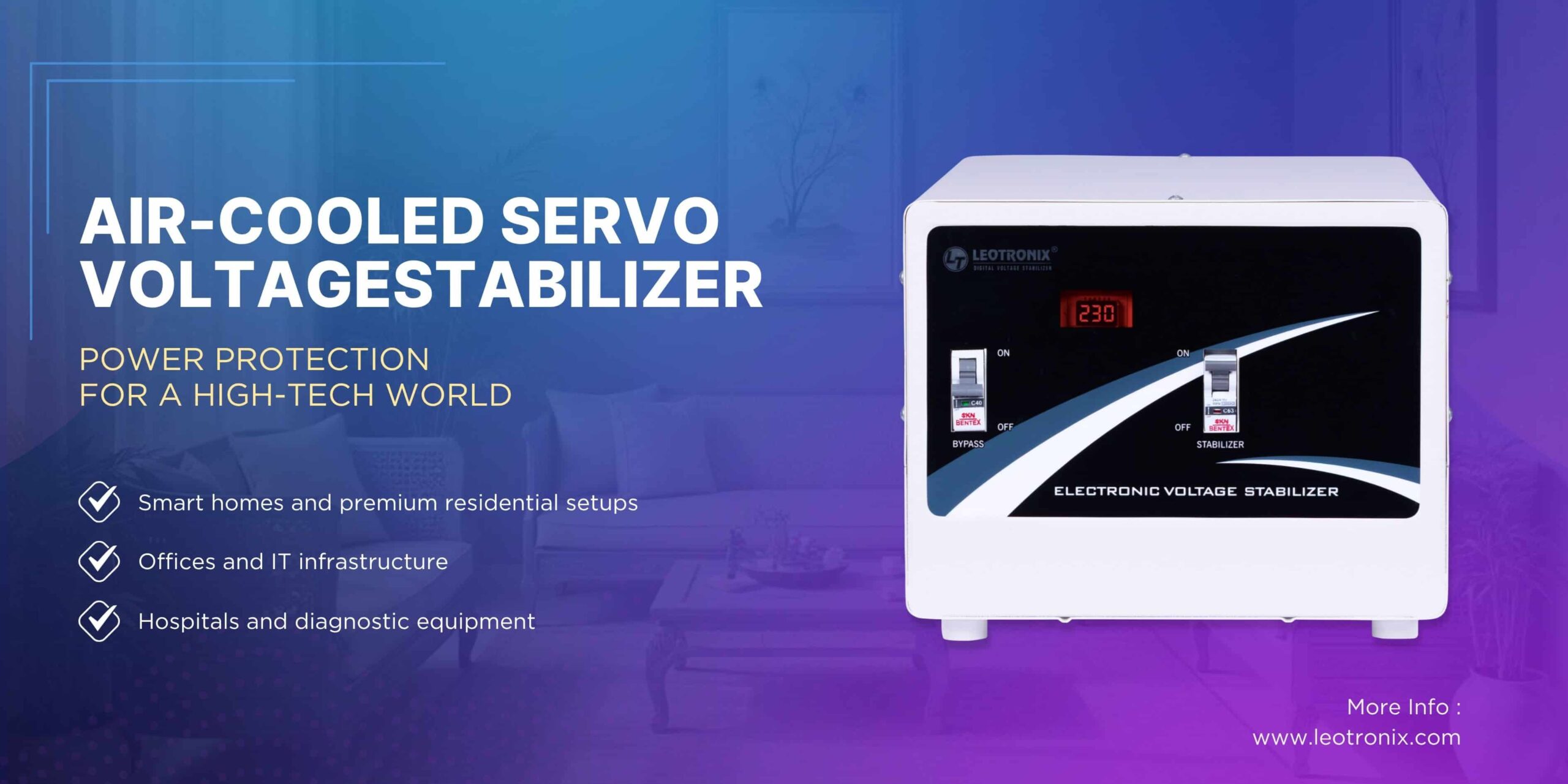 Leotronix offers high-precision voltage regulation, durable design, energy-efficient technology, and strong after-sales support, making it a trusted solution for modern power needs.